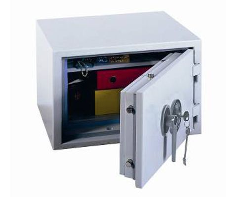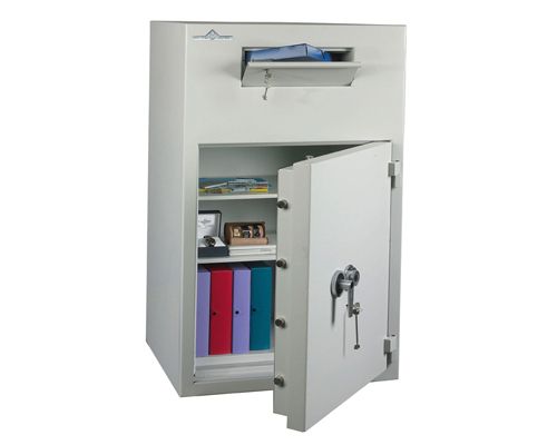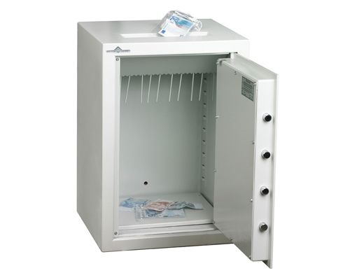 Armoire forte pour la protection et le rangement des clés en sites sensibles. Structure tout acier 20/10ème de mm. Ouverture de la porte à 180°. Serrure à combinaison mécanique à 3 disques, à fonctionnement silencieux et à manœuvre discrète et brouillage manuel. Système de dépôt de clés avec chicanes anti-pêche. Rangement des clés sur des barrettes réglables en hauteur. Dos percé de 4 trous de diamètre 10mm. L x P x H en mm : 375 x 105 x 400