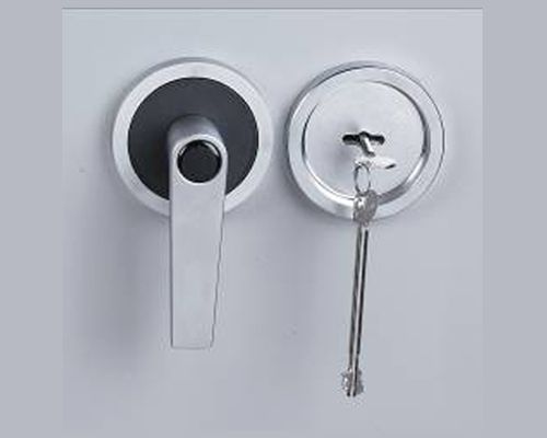 Serrure mono commande mécanique à 3 disques, homologuée ENV 1300 niveau B, 1.000.000 de possibilités, à brouillage mécanique automatique par action sur la poignée.